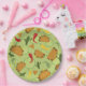 O taco de vamos de fiesta mexicano sobre um guardanapo de Chá de fraldas bebê. um padrão mexicano com taco, nacho, limão, cacto e pimentos coloridos. Design original.