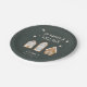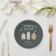 Whimsical Christmas theme baby shower plate featuring illustration of gingerbread houses with blue accents. The text says "it takes a village."