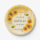 Prato De Papel Tardes de noiva com girassóis brilhantes em dourad