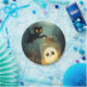 Um gato preto bonito pegou um pequeno fantasma em um vidro.