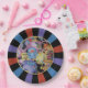 Conjunto de oito placas de papel de 9 polegadas com uma imagem de chaleiras e bules coloridos, com uma explosão de sol preto, roxo, azul e laranja. Consulte portas copos de plástico e papel correspondentes. Veja toda a coleção Wonderland Plate na COMIDA/BEV | Seção pratos.