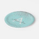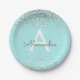 Prato De Papel Teal Aqua Blue Glitter Sparkle Monograma Aniversár