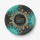 Prato De Papel Teal Black Fractal Fractal Swirl Jantar Party
