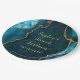 Prato De Papel Teal e Dourada Agate Marble Sweet 16