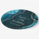 Prato De Papel Teal e Silver Agate Marble Aniversário