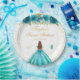 Prato De Papel Teal Floral Brown Hair Princess Sweet