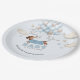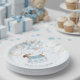 Adorable 'A Teenie Weenie Baby is on His Way' paper plates - personalized for the mom-to-be's baby shower. The plates are illustrated with a dachshund in a blue sweater, being carried by a bunch of soft blue and neutral beige balloons, amid stars and fluffy clouds. These unique and charming paper plates are perfect for a boy baby shower and will surely bring gentle fun and smiles to the table.