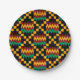Placa de papel com um padrão de pano Kente amarelo, verde, vermelho e preto. Este é um design de arte africano encontrado em Gana. Personalizável. O prato perfeito para celebrar Kwanzaa.
