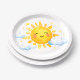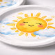 Prato De Papel Tema de Chuvinha de Bebê Sol Sorridente Azul