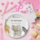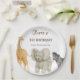 Wild One Safari Theme First Festa de aniversário Paper Plates é um belo design com animais selvagens africanos de girafa, elefante e zebra.