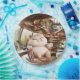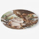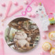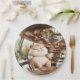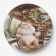 Um bonitinho gato gordinho senta-se contente numa cadeira de balanço, segurando uma xícara, em meio a um belo e desenhado interior de madeira com escadas espirais e amplo verde. O espaço está cheio de luz natural, dando-lhe uma atmosfera quente e convidativa. Digital Art Photoshop CS5