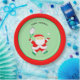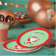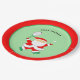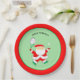 Fun tennis Christmas holiday party or event plates featuring Santa playing tennis and funny tennis-themed line.