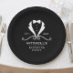 Eleve a sua celebração pré-casamento com estes elegantes pratos de papel para despedida de solteiro. Com um design de smoking preto e branco elegante e uma silhueta sofisticada de gravata borboleta, este é o máximo em decoração para uma noite de rapazes sofisticada e formal. São uma forma única de tornar o seu evento exclusivamente seu. O design é totalmente personalizável para incluir o nome do noivo e todos os detalhes do seu evento, tornando-os perfeitos para qualquer padrinho ou organizador de casamentos que procure adicionar um toque polido e distinto a uma despedida de solteiro ou celebração sofisticada.