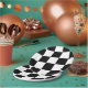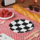 O teste padrão Checkered consiste alternar quadrados preto e branco ou os retângulos arranjados em um teste padrão do tabuleiro de damas, no número, no tamanho, e nas proporções da comprimento-largura dos retângulos variam de uma bandeira a outra.