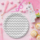 Prato De Papel Teste padrão cinzento e branco de Chevron do
