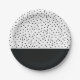 Prato De Papel Teste padrão de bolinhas branco preto moderno da
