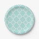 Prato De Papel Teste padrão geométrico azul de Quatrefoil do Aqua
