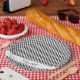 Prato De Papel Teste padrão preto e branco da xadrez da
