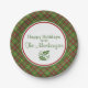 Prato De Papel Teste padrão verde da xadrez do Natal