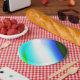 Prato De Papel Texto azul verde do arco-íris abstrato