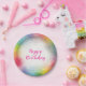 Moderno Rosa Vermelho Amarelo Laranja Azul Verde Texto Colorido Personalizado Feliz Aniversário Modelo de Artesanato & Suprimentos de Festa / Suprimentos de Festa / Louças / Papel & Pratos de Papel / Prato de Papel Redondo Clássico.