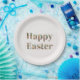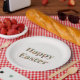 Texto decorativo do felz pascoa com ovos coloridos de páscoa, coelhos e flores