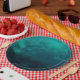 Uma textura de vidro verde fosco num verde-mar bonito. Essa interessante textura de abstrato tem espirais e designs circulares com um gradiente de verde-claro se misturando em verde-escuro profundo.