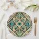 Prato De Papel Textura Dourada e verde de penas abstrato de pavão