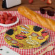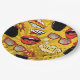 Adicione o seu próprio nome ou outro texto para personalizar este modelo divertido de placa de papel retrorreflector de bombas, lábios, bolhas de fala e óculos escuros em tons brilhantes de vermelho e ouro. O texto já no padrão diz 'WTF' e 'Boom'. Procure ID553 para ver outros produtos com este design.
