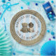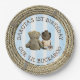 Bonita personalização, país e bebê bebezinho ocidental, com um ursinho de peluche e chapéu de vaqueiro e placas de festa de aniversário.