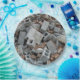 Características deste design da placa de papel uma foto da entulho da demolição que contem tijolos, blocos de cimento, e outros restos do naufrágio da construção.