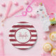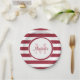 Placas de papel de listras brancas e vermelhas com pimenta de na moda chili. Personalize esse padrão contemporâneo adicionando o nome e monograma inicial da menina da hora. Esta design de monograma feminino faz parte da Coleção de Cores Essenciais de Verão do Partido das Grisas de Pimenta Chili.