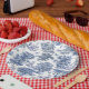 O padrão de película pastoral azul com homens e mulheres jovens trabalhando e relaxando na floresta para decoração rústica do país, plástico de presentes, artesanatos.