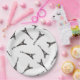 Conjunto de oito placas de papel de 9 polegadas com uma imagem de torres Eiffel pretas em branco. Ver pote de doces, copo espresso, frasco, lançador, bule e portas copos correspondentes. Veja toda a coleção de Placas de Cancelamento na COMIDA/BEV | Seção pratos.