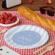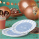 Um tema moderno com estilo retrô. Adicione um toque final elegante à sua festa de despedida de solteira com tema costeiro com estes pratos de papel "Última Tosta na Costa" azuis e brancos chiques. Todas as cores (listras, arco de fundo, ícones e, claro, cores da fonte) podem ser editadas por você dentro da ferramenta de design).
