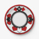 O brilhante, limpo, design de Art Deco inspirou um cartão a tocar tema nestas placas de papel robustas e brilhantes é perfeito para a próxima vez que você hospeda uma noite (ou tarde) para o seu grupo de cartões. Apresentando uma jante vermelha brilhante, 4 anéis interiores negras nítidos sobre um fundo branco, 4 grupos de 3 formas sobrepostas representando os símbolos icônicos de maiúsculas (diamante, trevo, coração e espada), e por último, mas não menos importante, um campo de texto personalizado para o seu monograma!