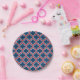 Prato De Papel Trellis, Latice, Quatrefoil, azul e vermelho marro