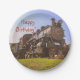 Estas placas de papel caracterizam o trem do vapor do vintage de Essex em Essex, Connecticut.