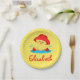 Um fundo de bolinhas branco e amarelo bonito, há um pato bonito brincando numa poça d'água. Há uma modelo para inserir um nome na parte inferior. Peça suas placas de papel hoje! Bolinhas e patos criados por: AMBilustrações http://www.etsy.com/shop/AMBillustrations/