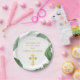Prato De Papel Trendy Greenery E Dourada Confirmação Cruzada