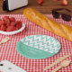Chapas de papel verde-menta e padrão de chevron branco, com uma fivela de lápis colorida desenhada à mão. Personalize este design zigzag, moderno e na moda, acrescentando o nome da garota do partido.
