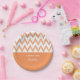 Chapas de papel para padrão cor de laranja e de gavão branco, desenhadas à mão, com braçadeiras de lápis de cor laranja desenhadas à esquerda. Personalize este design de zigzag laranja moderno e na moda, adicionando o nome da garota do partido.