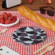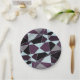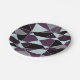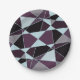 This simple paperplate has an abstract triangle pattern that features grey, white, maroon, and black colors.