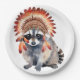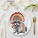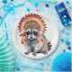 Uma ilustração encantadora de aquarela de um guaxinim vestindo uma morada tribal detalhada adornada com penas vibrantes vermelhas e laranja. Este design combina a curiosidade brincalhona dos guaxinins com um toque de espírito boêmico, fazer-o perfeito para amantes da natureza, entusiastas da vida selvagem, e aqueles que apreciam a estética tribal e rústica. Ideal para roupa, decoração doméstica e acessórios que exibem uma fusão única de natureza selvagem e arte.