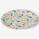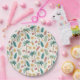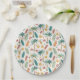 Bright tropical pattern paper plate featuring palm trees, surfboards, citrus slices, flip flops, and fruity drinks in a fun summer-inspired style. Ideal for beach lovers, surfers, vacation fans, and anyone who loves colorful tropical aesthetics.