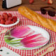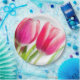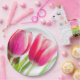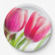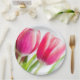 Prato De Papel Tulipas Rosa com Foto de Folhas Verdes