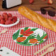 A design nesta placa de papel é de uma pintura de Julia Morrill