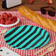 Placa de impressão de papel para turquesa e listras pretas. Este item faz parte de uma coleção que é personalizável.