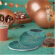 Prato De Papel Turquesa Elegante e Casamento Dourado