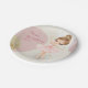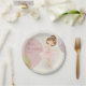 Serve your party treats in style with these elegantly designed ballerina-themed paper plates. This design showcases a stunning watercolor illustration of a graceful ballet dancer in a delicate pink tutu, complete with a shimmering gold crown and matching ballet slippers. The soft, whimsical background and golden glitter accents provide a high-end, artistic feel that transforms a simple party essential into a beautiful piece of decor.